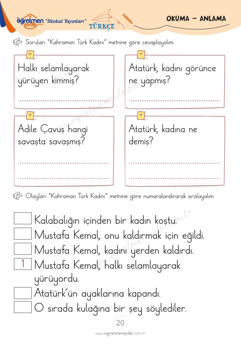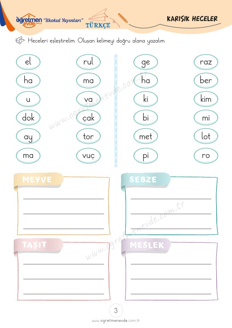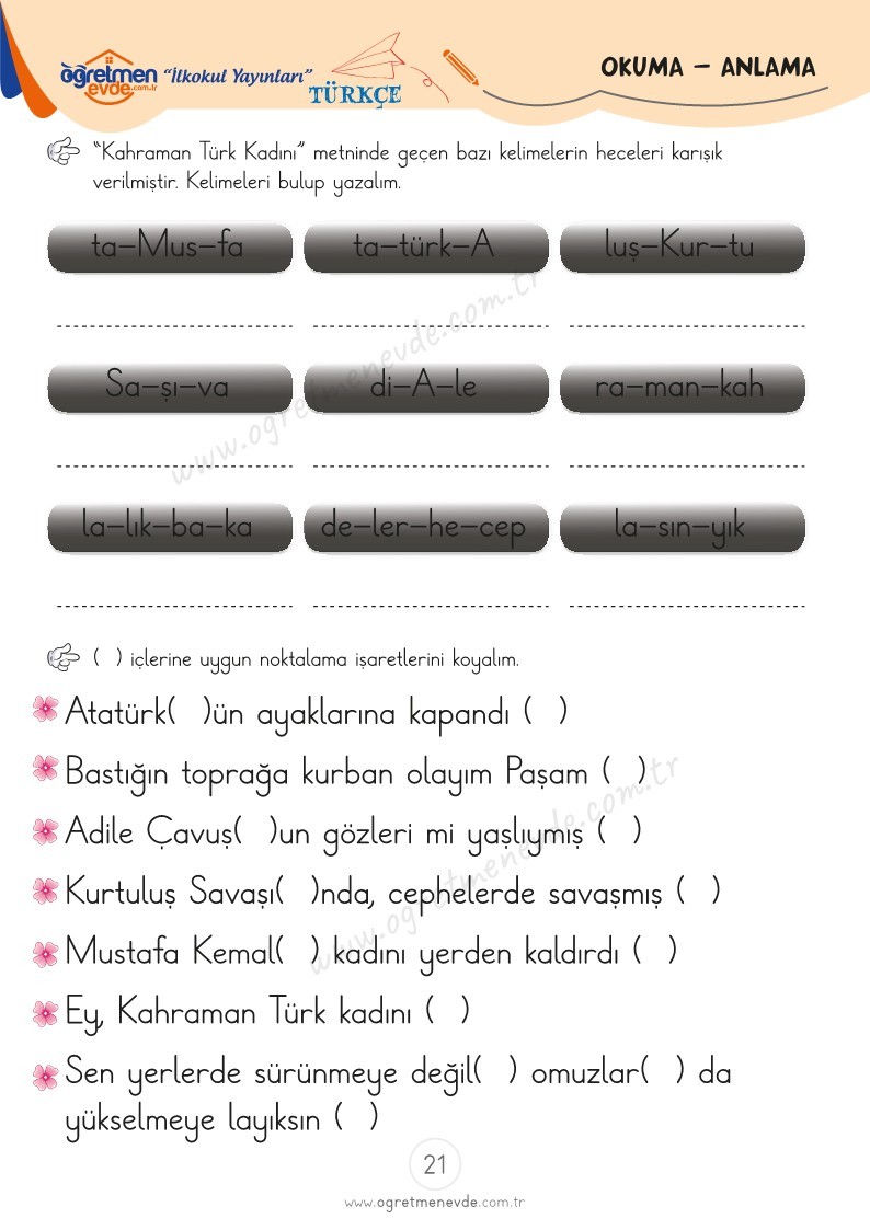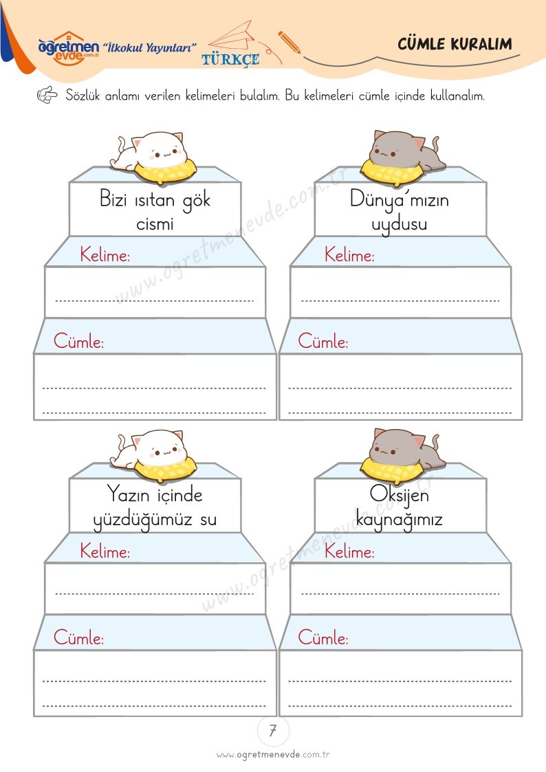 1.Sınıf 24.Hafta Günlük Ödevler Görseller