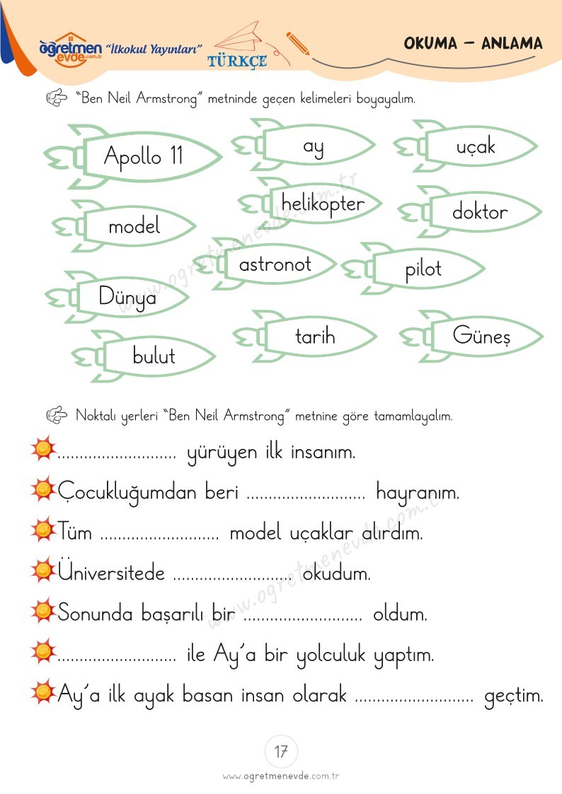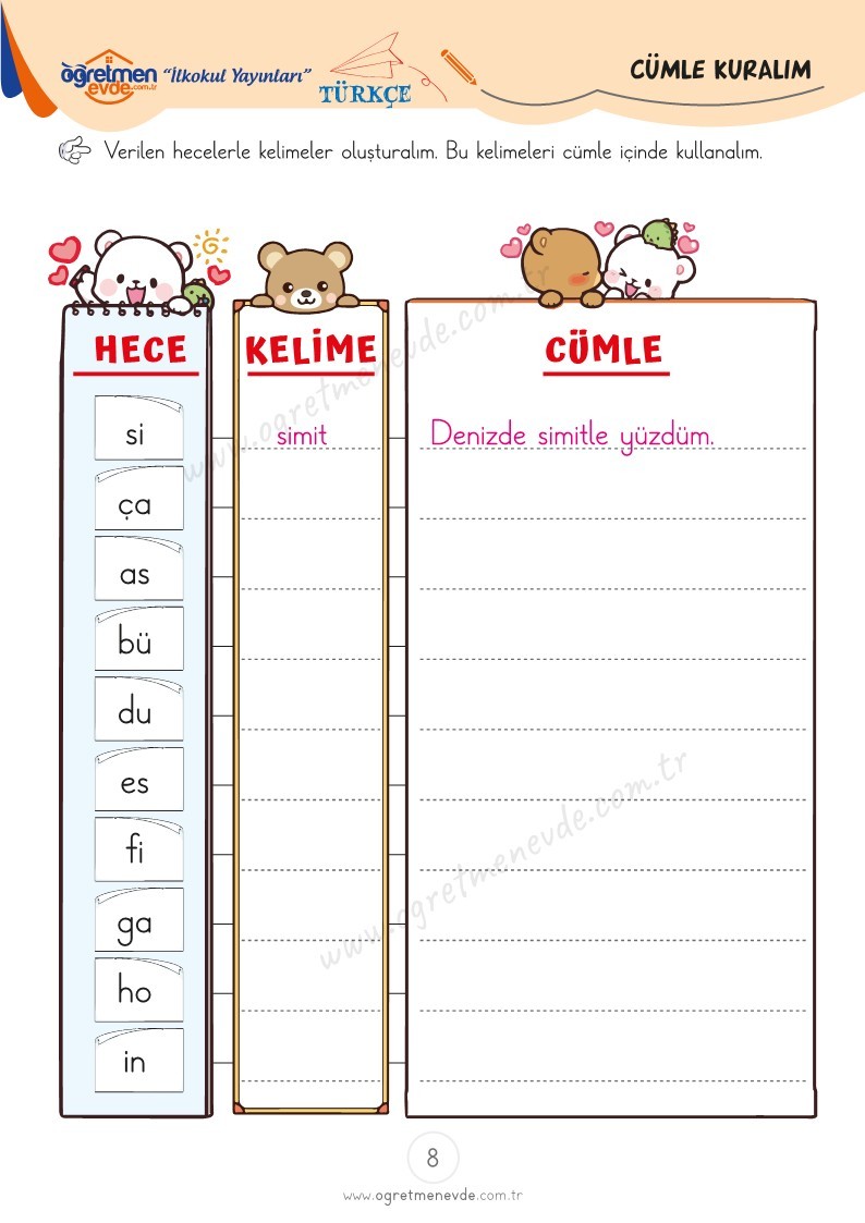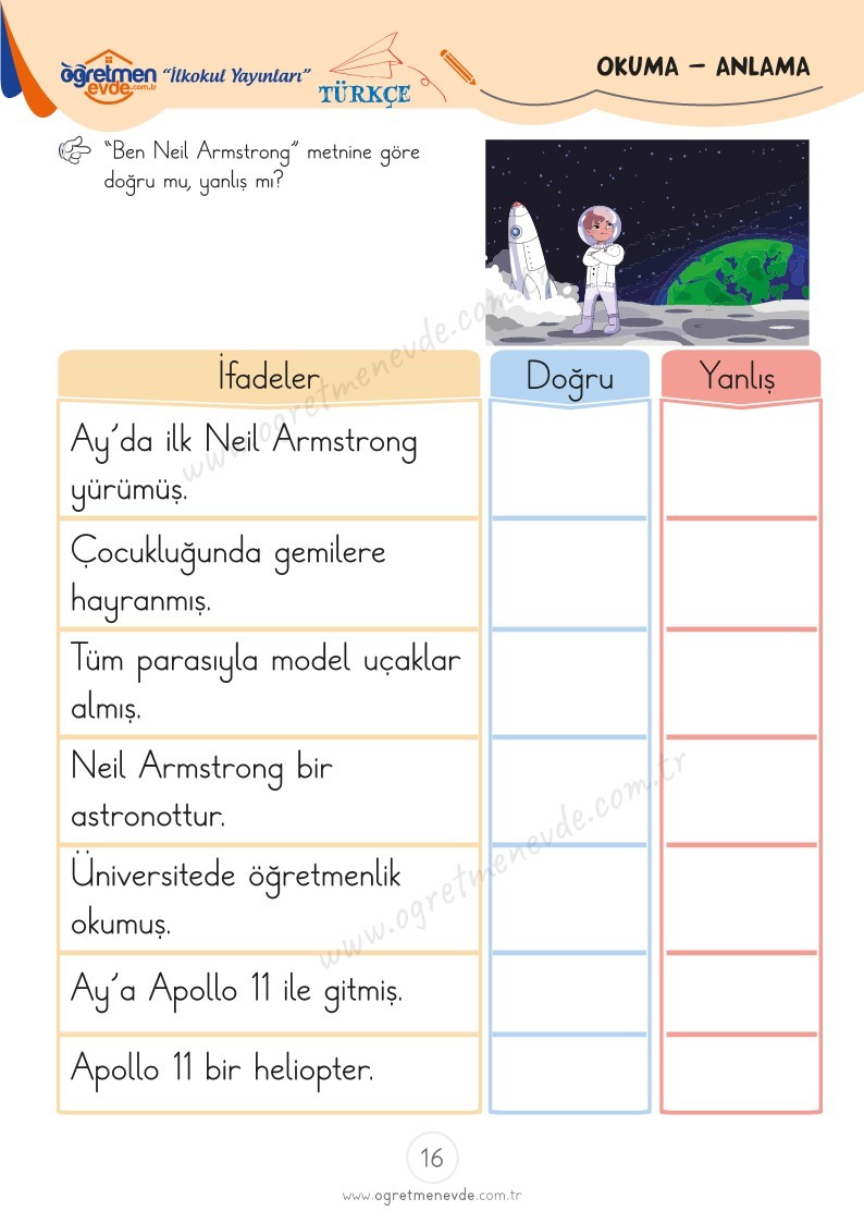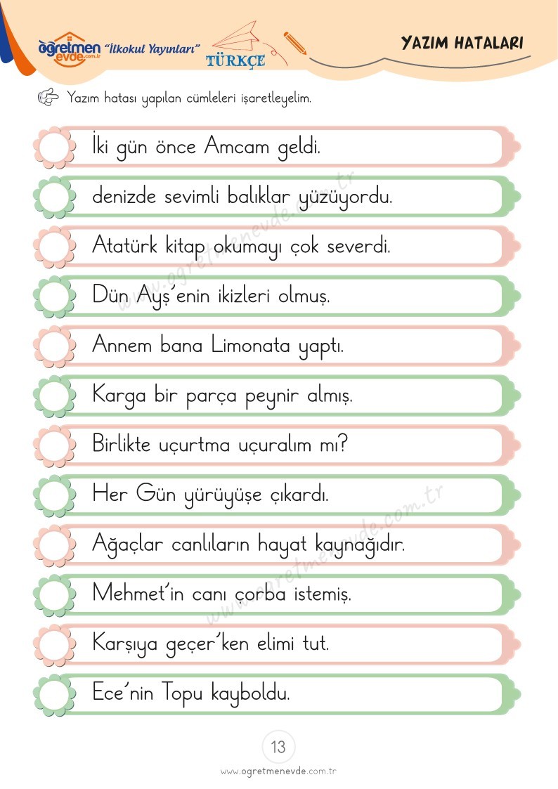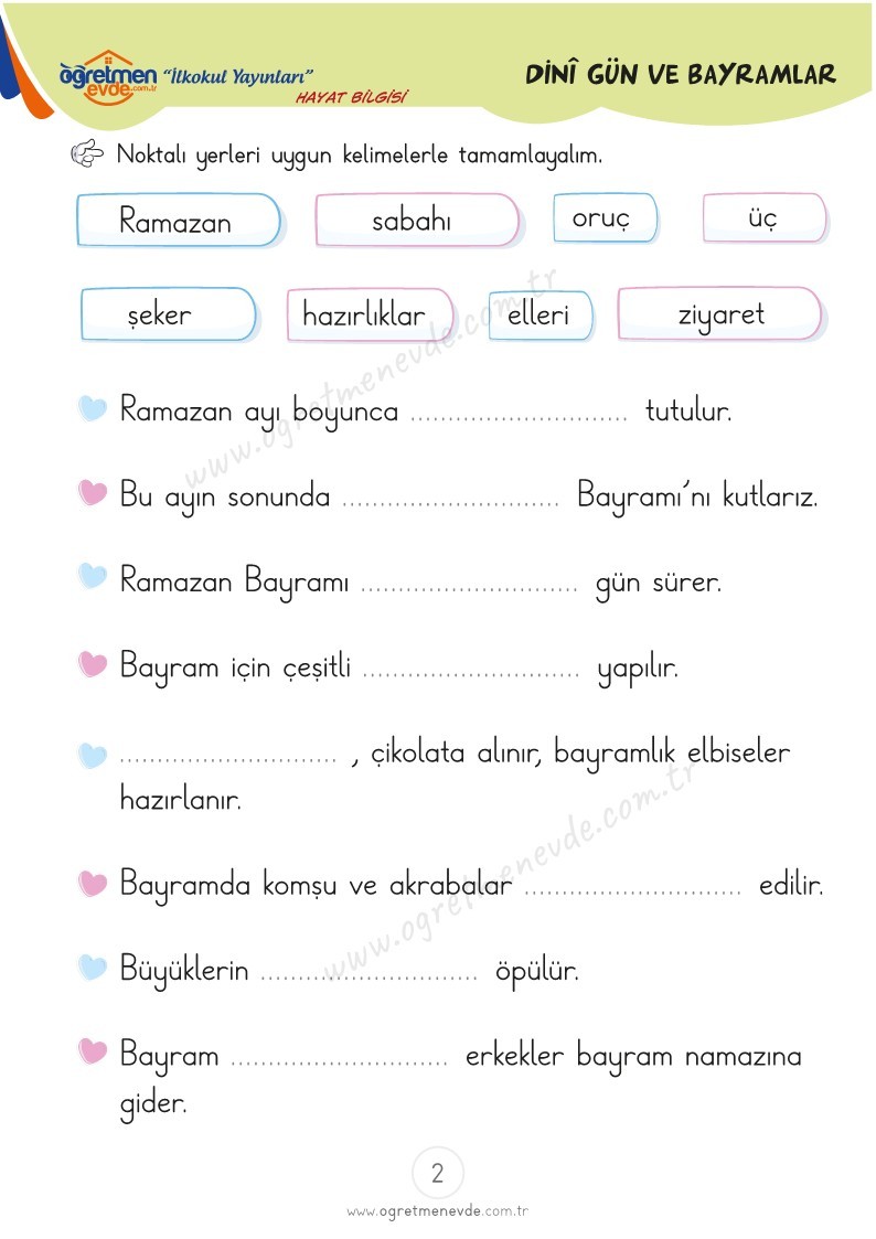 1.Sınıf 24.Hafta Günlük Ödevler Görseller