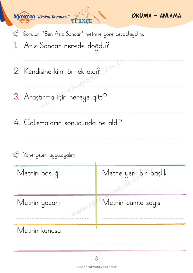 1.Sınıf Günlük Ödevler 2024-2025 Görseller